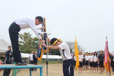 選手宣誓です。曇天の雰囲気を吹き飛ばす、元気な宣誓でした。