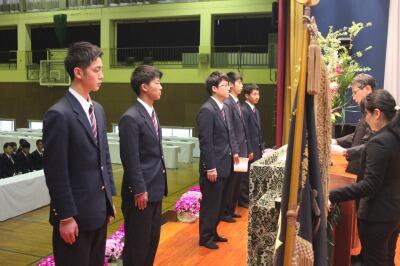 表彰式、記念品贈呈式、同窓会入会式が行われました。