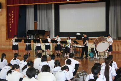 吹奏楽部です。少人数ですが、美しい音色を奏でました。