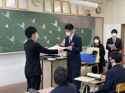 前日表彰式では、各種検定に挑戦した生徒や、皆勤賞の生徒たちが表彰されました。