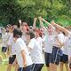 団の意地と意地がぶつかり合う団対抗リレー。各団の応援も最高潮のなか、接戦を制したのは男子白団、女子赤団でした。走り終えた後の笑顔は、とても眩しく輝いていました。