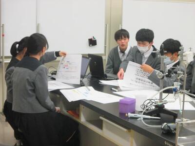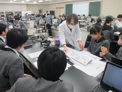 内容は「シミュレーションを用いた薬物の作用解析」で、3名の先生方の熱心な御指導のもと班員で協働しながら充実した学びを行うことができました。薬学への興味・関心を強める良い機会になったと実感しております。ここでの学びが生徒一人ひとりの成長に大きく繋がることを期待します。