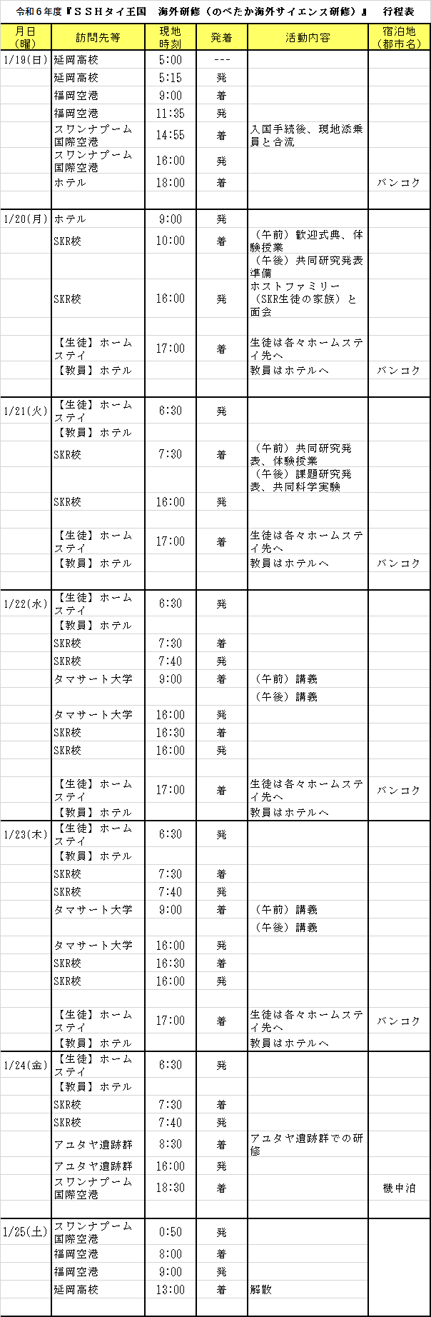 タイ王国は経済成長著しい東南アジア諸国の中心に位置し、国別の在留邦人数ではアメリカ、中国、オーストラリアに次ぐ第4位の国である(令和元年10月現在)。また進出日系企業数においては、中国、アメリカ、インドに次ぐ第4位の国である。このように日本との関係が深く研修の成果を将来活用しやすいというメリットと、保護者の研修費用負担のバランスに優れた研修先としてタイ王国を選択した。