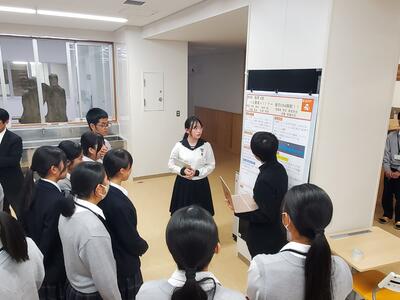 9月29日(木)に恒富中学校で、本校普通科2年生が課題研究の途中結果を発表しました。