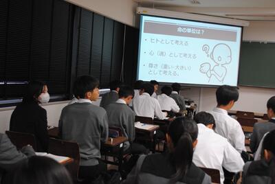 11月6日(水)のMS科2年課題研究では、鹿児島県立国分高等学校の生徒10名と先生2名をお迎えして、合同発表会を行いました。国分高校の理路整然とした研究発表をきいて、見習う点が多くありました。