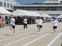 クラスを代表して走る「クラス対抗リレー」。1学年最速は4組の3分37秒98でした。