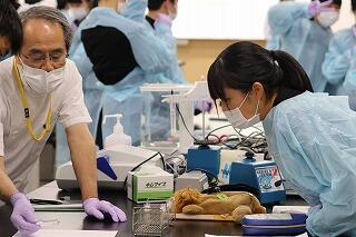 薬学部 動物生命薬科学科 明石 敏 教授による実習「「犬の血液細胞を観察しよう」