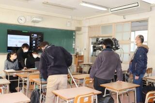 MRTテレビ宮崎「みらいみやざきまなび隊」の取材を受ける生徒