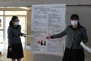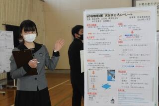 2年次の課題研究の計画をポスターにまとめ、発表し、質問により新たな気づきを得ることができました。発表はマスク着用、換気の実施、聴衆との距離の確保などの対策をして行いました。