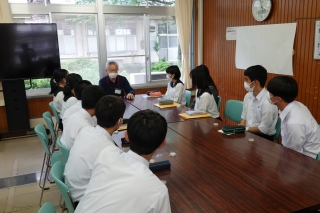 普通科2年生のSDGs課題研究でお世話になるアドバイザーに来校していただき、昨年度の生徒アンケートと今年度の計画を説明しました。