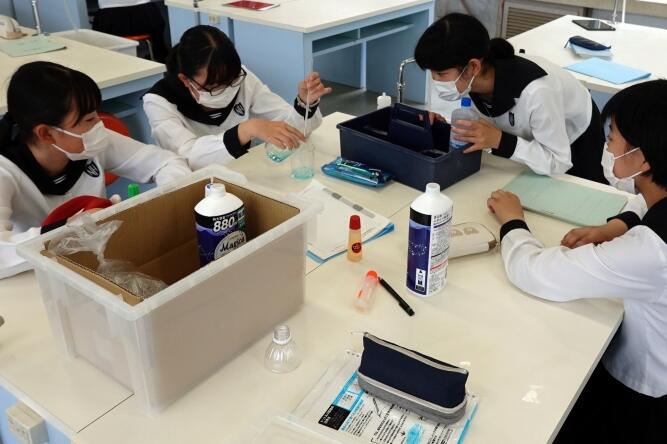 普通科2年SDGs課題研究 投稿日時 : 2021/06/16 学校管理者 6月16日(水)の普通科2年SDGs課題研究の模様です。生徒達は、自ら立てた実験計画に沿って、実験を進めています。北川湿原に繁殖する外来植物(ウォーターバコパ)の生育条件に関する実験豚の胃(南日本ハム様から提供)を用いて、錠剤の溶け方を研究する様子割れにくいしゃぼん玉に関する研究 Tweet