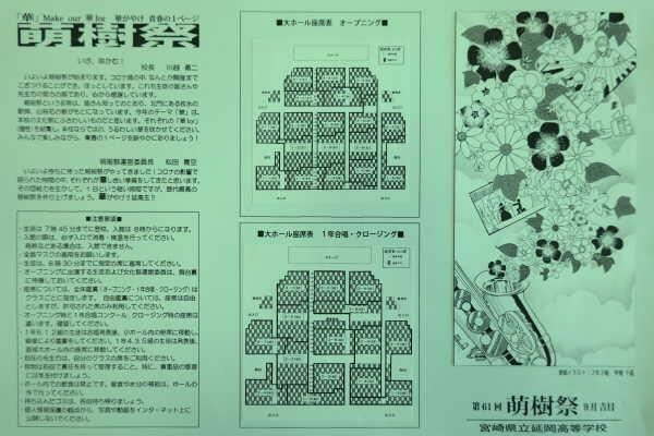 萌樹祭のパンフレット 投稿日時 : 2020/09/02 学校管理者 萌樹祭のクラス展示と劇をSDGsの枠組みで整理し、パンフレットに掲載しました。SDGsのアイコンは世界共通なので、外国の方々が見てもおおよその内容が伝わります。延岡高校SSH事業では、科学技術によりSDGsを達成する「STI for SDGs人材」の育成を目指しています。SDGsのアイコンが掲載されたタイムスケジュール(台風9号の影響でパンフレットから一部変更があります)表紙は生徒が描いた萌樹祭テーマ「華」のイラスト密を避けるよう間隔を保った座席配置も一目で分かります Tweet