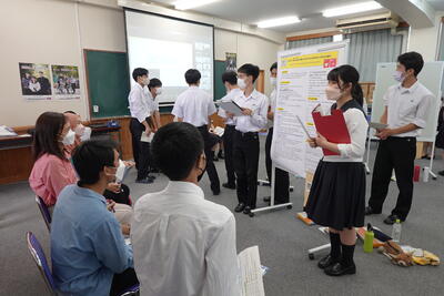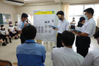 SSH成果発表会 投稿日時 : 2022/07/19 学校管理者 7月19日(火)の午前中、3年生が取り組んだ課題研究を、全員英語で発表しました。 大学関係者や留学生(宮崎大学医学獣医学総合研究科、農学工学総合研究科)、企業、県内外の高校から多く関係者が来場しました。 コロナ感染拡大防止のため、全員マスク着用の上、常時換気下で行っています。 Tweet