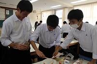 最後に教頭先生から、「昨年の中国・四国・九州地区課題研究発表大会に出場した化学班の発表の様子を、短くまとめて中学生の学校説明会で紹介しています。ぜひ、3月14日の県大会で、また代表になれるようがんばってほしいと」と激励の言葉を頂きました。