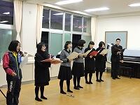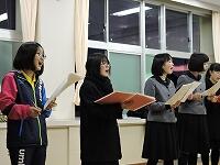 合唱部 投稿日時 : 2018/01/23 学校管理者 カテゴリ:MS科 だんだんと薄暗くなっていく日暮れの時間、家庭科棟の近くにはとても美しい音楽が聞こえてきます。その音楽に吸い寄せられていくと合唱部が練習をしているところでした。顧問の先生2人に指導を受け、それを聞き逃すまいと楽譜にメモを取りながら練習に励んでいました。少ない人数ながら、聴く者の心に響く演奏でした。歌詞の意味などをしっかりと理解した上で気持ちを込めて演奏しているということがよくわかりました。もし機会があれば、是非合唱部の演奏をお聴き下さい。