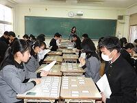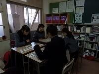 12月13日木曜。木曜の7限目はLHRです。1年生はそれぞれクラス単位でLHRを行っていました。1組は、ワードウルフゲーム。グループの中で1人だけ違うキーワードをもち、話をしながら違うキーワードの人を探るというゲーム。2組は百人一首。和室で、大会に向け練習を始めました。3、4組はグランドと体育館に分かれてサッカーとドッジボール。年に一度しかない自由にレクレーションができる貴重な時間。とても楽しく活動をしていました。5組は、クリスマスカード作り。夏にアメリカに戻ったケイティーに手紙を書きました。6組は、教室にて百人一首。先週よりとれる札が増えたようです。