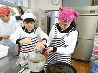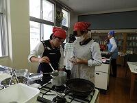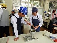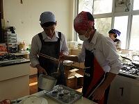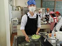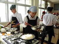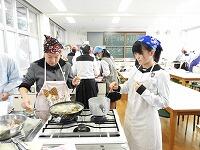 1年生家庭基礎の授業で、郷土料理の調理実習を行いました。メニューはチキン南蛮。そしてデザートでコーヒーゼリーを作りました。揚げ物をした事があるという生徒が少なく、どの状態が揚げ上がりなのかを確認しながら調理をしました。出来上がったチキン南蛮はタルタルソースをつけて食べました。御飯と合いますよね。