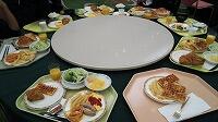 朝食。今朝もバイキングです。今日はこれからスキー教室です。上手にすべれるかな。みんなとても楽しみのようです。