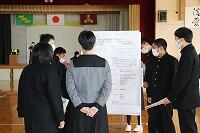 1年生課題研究 研究計画ポスターセッション 投稿日時 : 2022/02/25 学校管理者 カテゴリ:SSH関係 2年生で行う課題研究の計画立案を行い、これまで1年間行ってきた内容についてポスターセッションが行われました。準備設営が終わるとそれぞれグループで打ち合わせをし、本番に臨みました。2年生にまでつながるこの課題研究。発表をし、質問された内容などをメモしてこれからの研究の課題にしたり、先生達から意見をもらいながらこれからの研究を深めていけるいい機会となりました。
