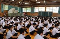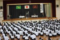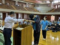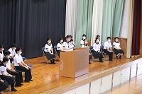 今年度はコロナ感染症予防対策として、生徒会任命式・終業式・表彰式・体育大会結団式のすべてを