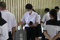 立候補者の演説をしっかりと聞いた後、選挙管理委員立ち会いのもと投票を行いました。