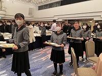 無事にホテルに到着し、クラスごとに交代で夕食をとりました。