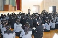 3年生の学年集会では、3週間後に迫る大学入学共通テストに向けて、進路指導部長の先生が用意されたしおりが配布され、受験上の注意や心構えについての講話がありました。そこにはメモを取りながら真剣な表情で話を聞く、既に少し緊張しているような様子の生徒たちの姿がみられました。