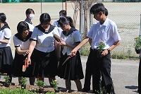 ジニア・マリーゴールド・アメリカンブルー・トレニアの4種をクラスみんなで、全体の配置や配色を考えて植えました。