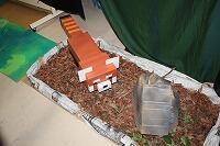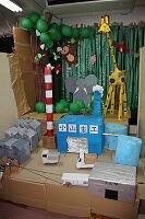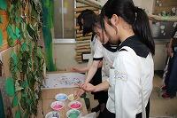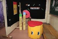 2年生はたくさんの段ボールに囲まれながら、工夫を重ね展示作品を作り上げています。