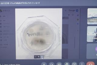 のべたか海外サイエンス研修 共同研究 投稿日時 : 2021/11/30 学校管理者 11月30日(火)の放課後、タイの高校とオンラインで結んで、共同研究の進捗状況を報告しました。日本とタイで同じフードスタンプ(寒天培地)を用いて、菌の繁殖状況を研究しています。SSH事業は、科学技術振興機構(JST)からの支援を受けて実施しています。