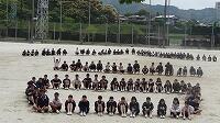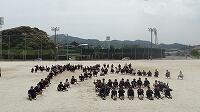 1学年レクレーション 投稿日時 : 2017/05/02 学校管理者 カテゴリ:学校行事 歓迎遠足の日の午前中にそれぞれ学年ごとにレクレーションが行われ、1学年では、長縄と40人41脚、または41人42脚をしました。長縄は、最初、呼吸が合わず、1回飛ぶのがやっとという感じ。2列になってみたり、3列になってみたり、大声でかけ声をかけてみたり。さぁ、スタート。みんな本番に強いのか、10回以上飛ぶクラスが多く見られました。中には20回以上のクラスも。声を掛け合い、クラスメイトを気にかけながら、その後のレクレーションでも盛り上がりました。1年生も少しは学校生活に慣れてきたのか、友達と仲良く話す様子や笑顔がたくさん見られ、安心しました。