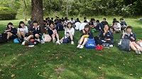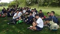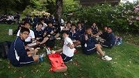 遠足の3年レクリエーション 投稿日時 : 2017/05/01 学校管理者 カテゴリ:学校行事 歓迎遠足の学年行事では、各学年でレクリエーションをしました。3年生のレクリエーションは、「全員つないでin!!」と「人間彫刻」。「全員つないでin!!」は、1つのビーチボールを、クラス全員で落とさないように回していき、必ず全員がボールに触ったら、最後にバケツにボールを入れるというゲームです。まずは、どのクラスも作戦をたててやってみましたが、なかなかうまくいきません。しかし、だんだんコツをつかみ、危ない時はみんなで必死にボールをつなぎ、最終的にはどのクラスも成功しました!中でも、タイムが1番早かったのは、3組さんでした!つぎに、「人間彫刻」は、3年生全員の目標である「合格」の文字を作りました。撮影できる高い場所がなく、低い場所からでも文字に見えるよう試行錯誤をして、なんとか文字になりました・・・!?「合格」に見えるでしょうか??そして、緑がとてもきれいな芝生の上の木陰で、お弁当を楽しく食べました♪