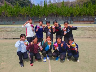 女子テニス部は、部としてのまとまりを大切にし、文武両道を目標に日々頑張っています。短い練習時間の中で練習を工夫し、基本的な動きを中心に練習をしています。テニスを通して心身を鍛え、楽しく活動をしています。 |