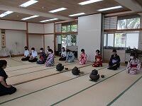 正式な大会はありませんが、7月に市内であるお茶会に参加しています。また、6月に行われる萌樹祭で毎年お茶会を開催し、例年100名程度の参加があります。また、タイ留学生におもてなしもしています。