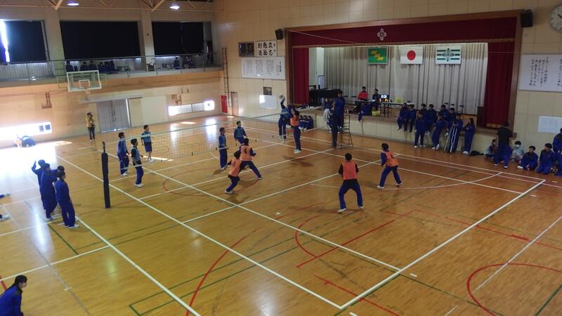 株)MFEHIMUKA 社長 吉岡様、会長 島原様より体育館用暗幕及びコンピュータ一式を贈呈していただきました