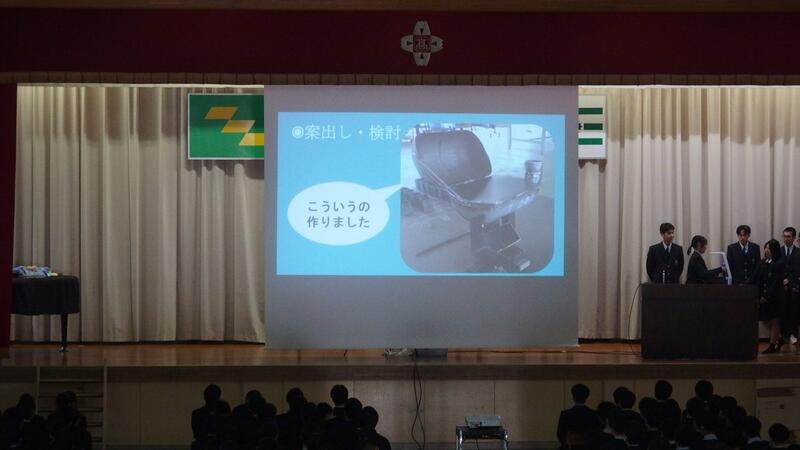 株)MFEHIMUKA 社長 吉岡様、会長 島原様より体育館用暗幕及びコンピュータ一式を贈呈していただきました