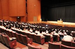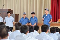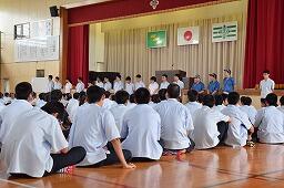 6/9(土)に本校を会場にして行われる「高校生ものづくりコンテスト宮崎県大会」の壮行式を行いました。このコンテストはものづくりへの意識の高揚と技術・技能の習熟向上を図り、工業教育の活性化を図るものです。本校からは「旋盤作業」「電気工事」「電子回路組立」「測量」「化学分析」の5部門に参加します。各部門の代表者が決意表明をし、全校生徒を前に健闘を誓っていました。