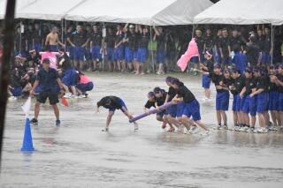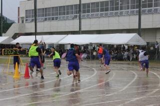 開会式の時点ではまだ小降りだった雨が、競技が始まってしばらくするとその雨足を強め、残念ながらいくつかの競技をカットするという事態になってしまいましたが、どうにか午前中のみへの繰り上げで行うことができました。
