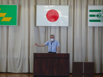 校長先生からは、コロナウイルス第7波を迎え、感染対策が一層重要であることや、各学年における1学期の振り返り、夏休みの過ごし方等についてお話を頂きました。