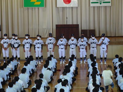 1学期期末テスト最終日の本日、高校野球選手権宮崎大会・ものづくりコンテスト九州大会壮行式を実施しました。