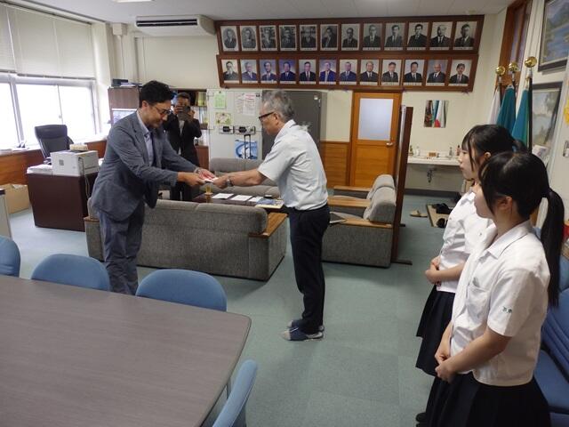 体育館用暗幕及びコンピュータ一式を贈呈していただきましたので、贈呈式を7月24日(木)本校校長室にて行いました。暗幕は文化祭などの学校行事、コンピュータは情報技術科のAI研究用に役立てて参ります。寄贈いただきありがとうございました。