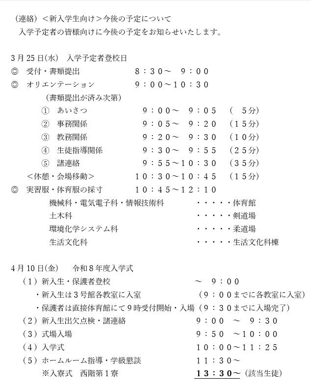 令和8年度 合格予定者登校日と入学式日程のお知らせです。