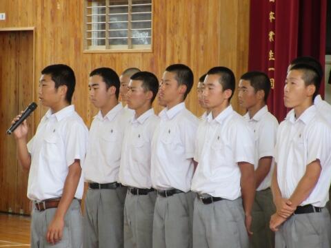 この勢いを2学期の学習活動、学校行事、何よりも3年生にとっては就職試験、入試(大学、短大、専門学校)に向けて取り組んでください。“栄光は君に 挑戦せよ! 延商生”