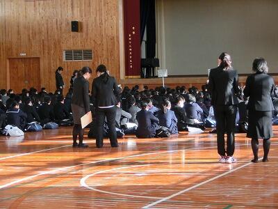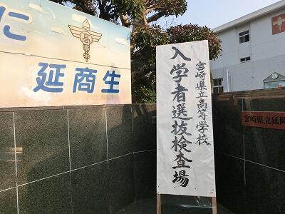 本日より、『宮崎県立高等学校入学者選抜検査』が実施されました。昨日の会場設営に引き続き、今日も早朝から先生方が準備に当たりました。7時半を過ぎると、緊張の面持ちの中学生がちらほらと登校し始めました。全員が揃うと体育館で全体説明があり、その後各教室へ移動して試験に臨みました。今日は、「国語」・「理科」・「英語」の3科目を実施されました。中学生の皆さん、大変でしょうが、明日まで頑張ってください。