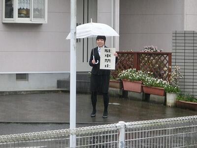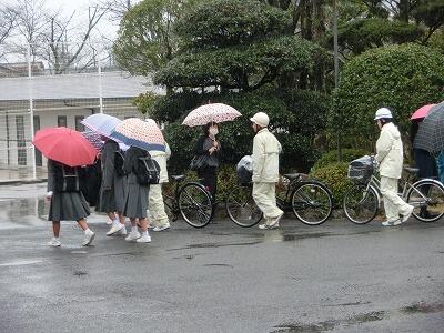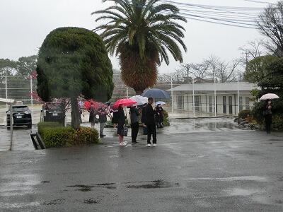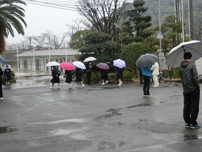 入試2日目はあいにくの雨でした。雨の中、交通立ち番に立たれた生徒指導部の先生方、本当にお疲れ様でした。