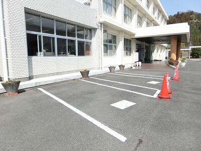 校長室前にスペースがあったため、『思いやり駐車場』を2台分設けました。事務長が駐車ラインを丁寧に引いてくださり、ステッカーを県に申請して、出来上がりました。これで、玄関までの動線が短くなりました。