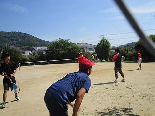 隣りのテニスコートでは、男子ソフトテニス部が練習していました。最近力をつけてきた男子ソフトテニス部、高校総体での活躍が楽しみです。