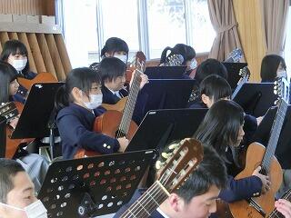 ☆音楽室を覗いてみると、音楽選択生がギターの学習をしていました。
