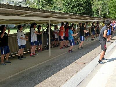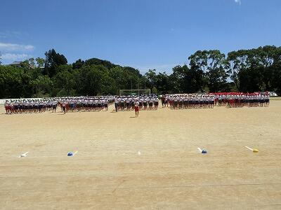 本日は4限目から7限目までの4時間を利用しての全体練習でした。4限目は行進練習をやり、午後はラジオ体操の練習を念入りにやったあと、学年別に分かれました。
