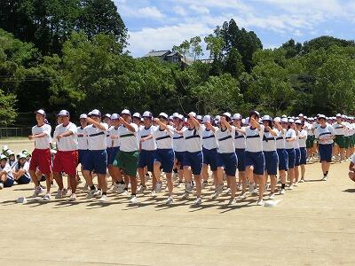 本日より、体育大会の全体練習が始まりました。3限目から6限目を使って、行進やラジオ体操、応援などの練習を行いました。放課後も団の応援練習をしている3年生の姿が見られました。一番の心配は熱中症です。しっかり食事と睡眠をとって、体育大会に臨んでほしいと思います。